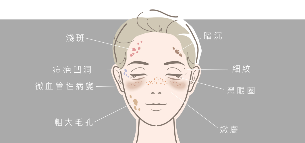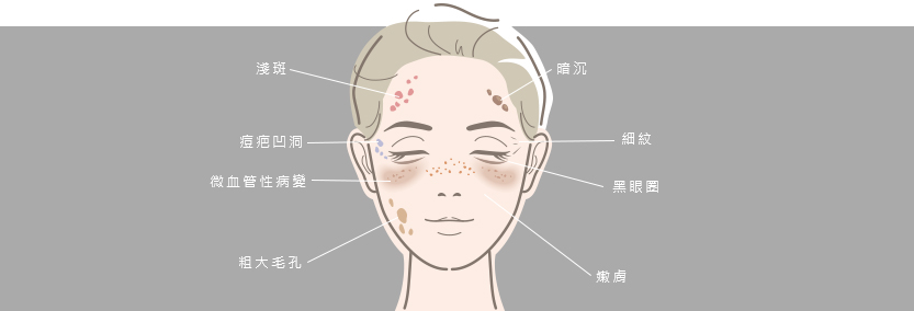 *頑固深層、淺層斑點 *細紋、皺紋困擾 *毛孔問題 *提亮膚色 *去除刺青、紋眉 *凹洞痘疤