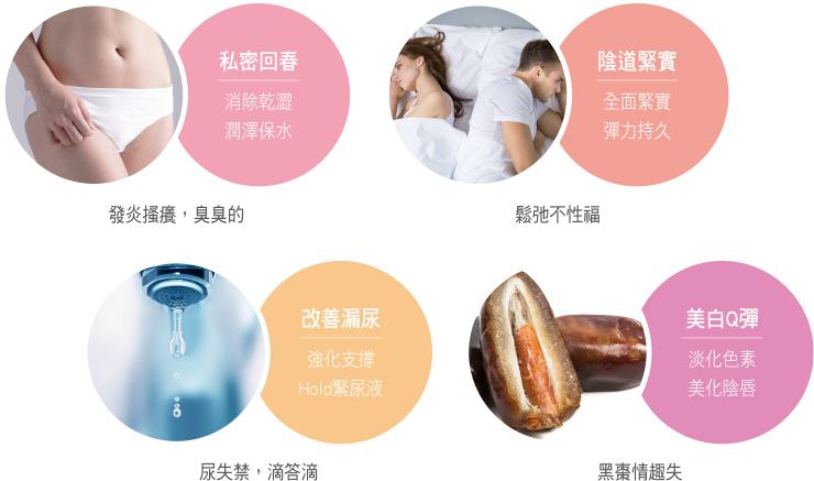 私密處的治療分為陰道與防漏尿兩個部分,主要都跟身體老化,這些部位的膠原蛋白、玻尿酸、彈力蛋白流失造成的。
